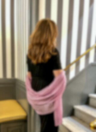 Airy solid colored silk shawl in a beautiful pink colour. Made of 100% mulberry silk in a light and transparent chiffon fabric. Size: 180x65 cm.