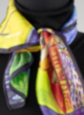 Silk Scarf in 100% mulberry silk with an art motif of van Gogh's well-known work The Street Café. Smooth, stylish and extremely appreciated silk Scarf in quality silk. Easy to use in blue & dark shades. Perfect around the neck, in the breast pocket or as a gift!