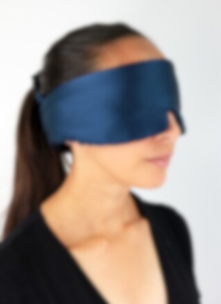 Blue eye mask in 100% silk satin with heavy filling of soft silk wadding. Lovely smooth in premium quality of long fiber mulberry silk. Comfortable against the skin thanks to the soft silk satin and pure natural material that regulates temperature and does not get too warm.