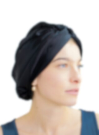 The black turban-style sleep cap is an elegant and luxurious accessory made from 100% mulberry silk. With its soft satin finish on both the inside and outside, it offers a premium feel and exceptional comfort. The design ensures a perfect fit whether you have a lot of hair or just a little, gently adjusted to your head for optimal wearability.