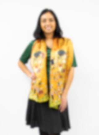Beautiful gold art Scarf. Motif the iconic "Kiss" by Gustav Klimt. Pure silk of the finest mulberry silk quality.