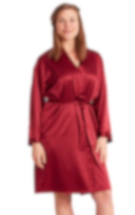 Silk robe in delightfully soft and shimmering satin silk. Smooth and comfortable against the skin. Flattering & elegant kimono fit including smart pockets, a silk belt and a functional silk string attachment on the waist. Perfect for the spa or just for day-to-day luxury at home.