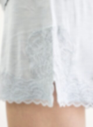 These soft silk shorts in spun silk with elegant lace details are both beautiful and comfortable. The shorts are made of 100% mulberry silk and in a nice ocean blue color. Thanks to the natural temperature-regulating properties of silk, the linen is both cool and comfortable against the skin - perfect for warm nights. Feel free to combine with the matching silk linen for a complete and luxurious pajamas.