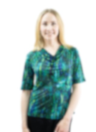 Elegant draped top in 100% mulberry silk of soft & natural tricot quality.