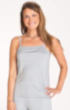 grey silk singlet in pure mulberry silk. Elegant thin shoulder straps & comfortable fit. Incredibly soft & light enough to fit in your handbag. Perfect summer tank top in luxuriously smooth silk. Strong & durable silk tricot quality. Silk is a natural smart fabric, always the perfect temperature due to the structure of the silk fibre. This allows for an incredibly comfortable undershirt no matter the season.