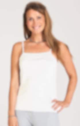 White silk singlet in pure mulberry silk. Elegant thin shoulder straps & comfortable fit. Incredibly soft & light enough to fit in your handbag. Perfect summer tank top in luxuriously smooth silk. Strong & durable silk tricot quality.