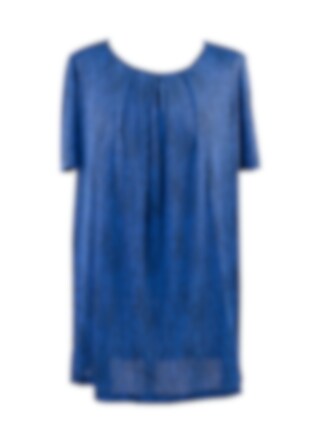 Delightfully comfortable silk top in real mulberry silk that is always warm enough. Pleasant airy fit that ends approximately at or below the hip depending on the wearer's height. Stylish neckline & generous sleeve.