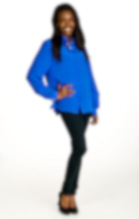 Classic ladies silk blouse in 100% silk. Smart design with long sleeves and elegantly hidden buttons. Straight & comfortable cut which falls beautifully. Small stylish detail slit on the bottom side seams for a good fit. Premium crêpe de chine quality which gives a lovely textured & luxurious feel to the fabric.