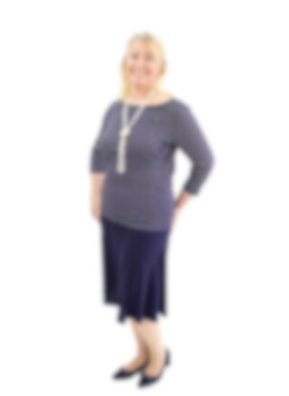 Knee-length skirt crafted from 100% twisted mulberry silk (145 g/m²), offering a durable yet lightweight fabric with a fluid drape. The twisted silk quality enhances the garment’s longevity and resistance to wear. The classic navy hue, combined with the fabric’s structural stability, provides both timeless elegance and lasting functionality—making this skirt ideal for everyday wear as well as more formal occasions.