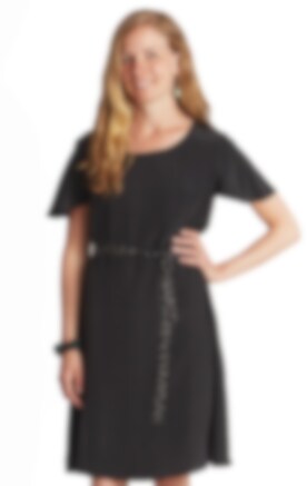 Flowy and elegant dress in soft crêpe de chine silk. Delightfully comfortable A-line fit which falls beautifully over the figure. Airy, comfortable sleeves which open in a hidden v-shape towards the body. This classic and timeless "little black dress" is a closet must-have and is suitable at a cocktail party just as well as the office.