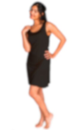 Silk underdress in a thinner quality than our standard. Extra light and delightfully soft against the skin. Classic & timeless black color. Comfortable model with soft and wide shoulderstraps and a small slit on the lower leg. Can also be worn as a light nightdress.
