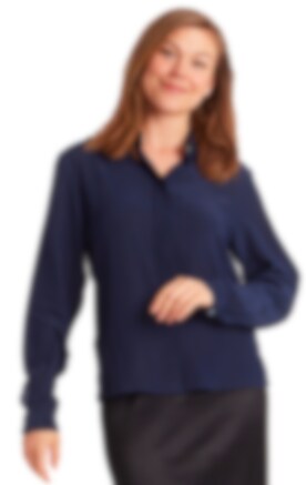 Classic ladies silk blouse in 100% silk. Smart design with long sleeves and elegantly hidden buttons. Straight & comfortable cut which falls beautifully. Small stylish detail slit on the bottom side seams for a good fit. Premium crêpe de chine quality which gives a lovely textured & luxurious feel to the fabric.