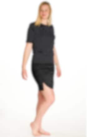 Delightfully soft and lustrous silk satin skirt in classic midnight black. Sophisticated and elegant at the office, a party or just at home as a comfortable day-to-day skirt. Functional as an underskirt as silk satin is uniquely smooth, soft and light against the skin. Silk satin in this design falls beautifully over the figure, with graceful slits on the sides. This skirt is a classic in the closet, and the sophisticated black color is easy to match with almost any top or jacket. Simply a wonderfully comfortable yet chic skirt.
