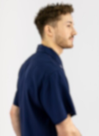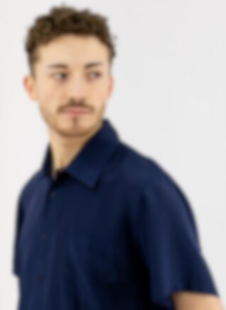 Classic clean-cut mens shirt in 100% pure silk of crêpe de chinè quality. Comfortable and airy shirt of strong durable material. A great shirt in classic navy blue, suitable for every-day use as a summer shirt or as casual office wear.