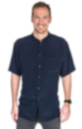 Men's Standing Collar Silk Shirt, Navy Blue
