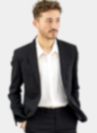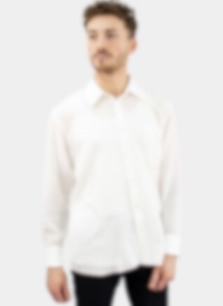 Stylish white silk shirt with long sleeves and a full-spread collar with pearl buttons. Two buttons to the cuff make it easy to adjust the width of the sleeve end. Woven in crepe de chine of 100% mulberry silk.
