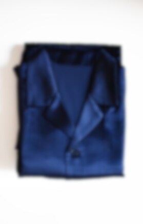 Classic mens silk pyjamas in navy blue. Luxuriously soft & lustruous satin silk, the smoothest type of woven mulberry silk with with buttons in mother of pearl. Comfortable pants with an elastic to ensure the perfect fit.
