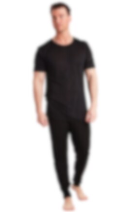 Soft an comfortable unisex t-shirt in 100% mulberry silk. Short sleeves. Classic black. Suitable for sports, sleepwear or as a soft undershirt at the office. Silk is a wonderfully breathable fabric by nature, allowing sweat and heat to pass freely through the fabric keeping your body at a natural temperature in both cold and warm temperatures. Perfect pyjama shirt for those who get very warm or cold during the night. Light & comfortable undershirt whether under a summer shirt or winter sweater.