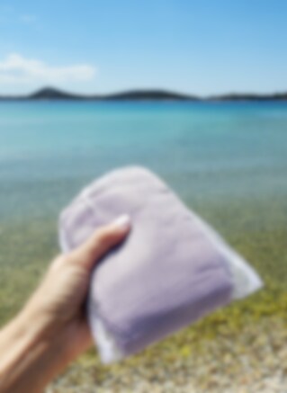 Bath towel in 100% viscose fabric, a natural fiber material found in the cellulose of trees. Delightfully smooth against the skin, light-weight and incredibly quick to dry. Unlike bulky terry towels, this towel requires minimal space in your suitcase! Great for drying your hair or body after a shower as it is delightfully light and smooth.